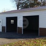 This 20x31x9’ custom garage building features two 8x8’ rollup garage doors, two walk-in doors, and horizontal side panels. With its vertical style roof and 14-gauge steel framing, this high-quality metal garage is equipped to withstand intense weather, including high winds and heavy precipitation, in just about any part of the country. This steel garage has a great layout with multiple access p...