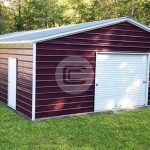 Featured above is a prefabricated (prefab) 48’W x 20’L x 12’H barn with a vertical roof. The center section is 24’W x 20’L x 12’H, and lean-tos are 12’W x 20’L x 9’H. Included with this structure are two 10’x8’ roll-up doors with 45-degree trim kit, four Dutch frame-outs, two standard walk-in doors, three windows, and two-tone color match package. It is certified to withstand 140mph wind and 30...
